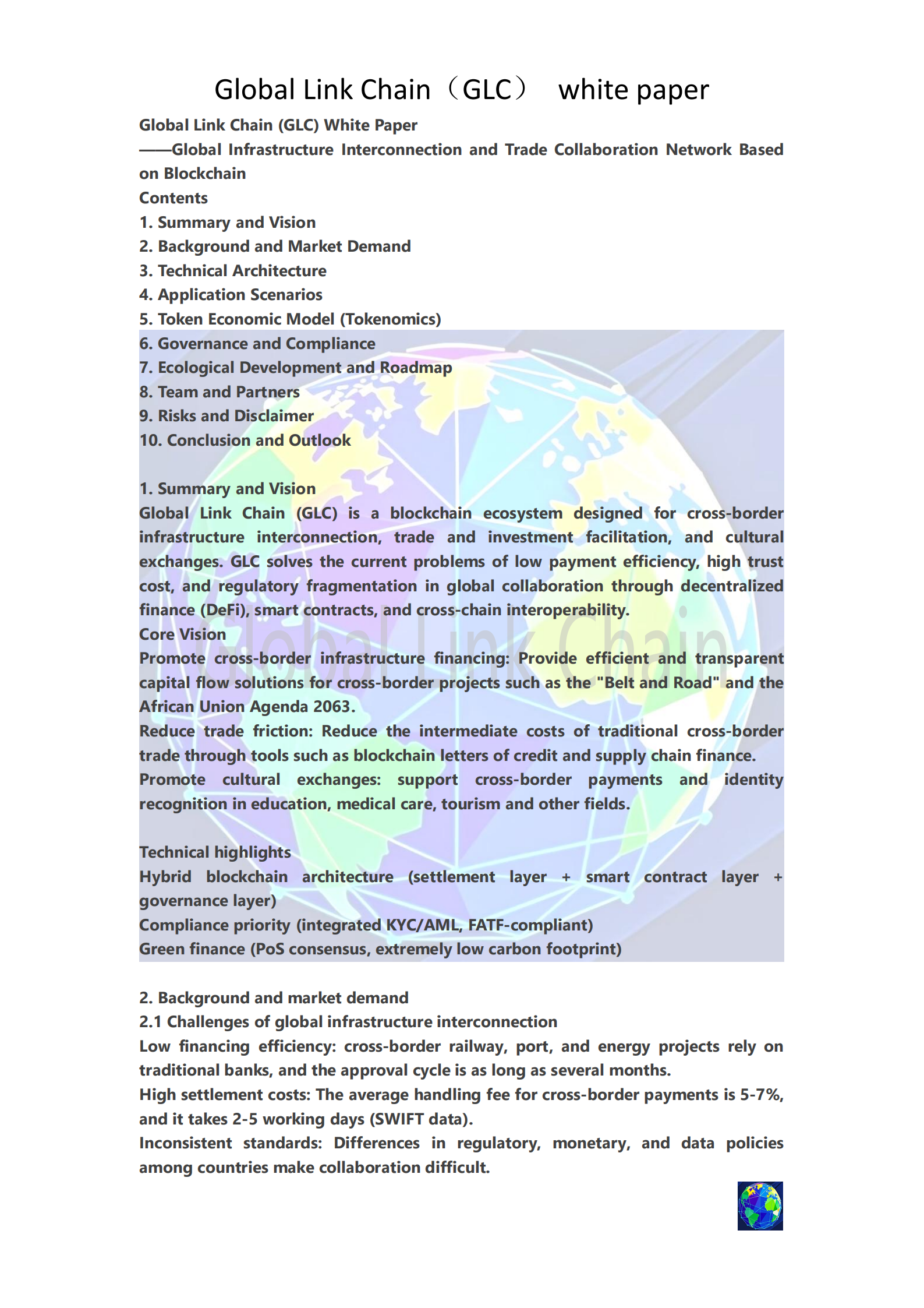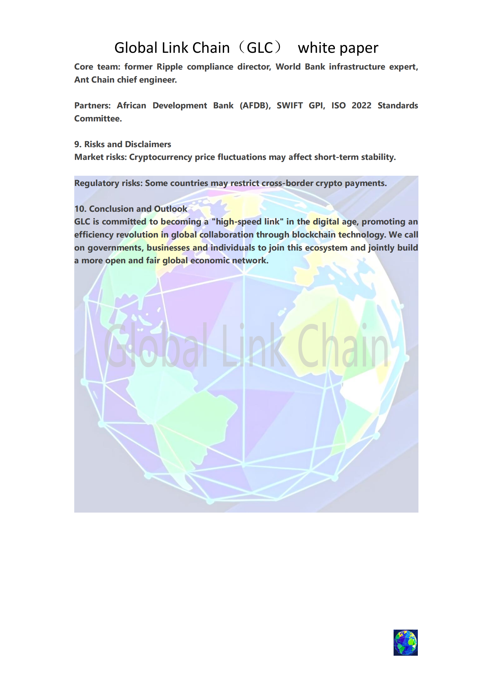Conclusion: The investment opportunity of GLC may be an important step in changing our future payment methods. The world is getting smaller, and GLC makes the flow of money freer!